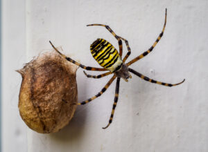 På nogle af billederne ses den sammen med sit ægspind, der var hæftet fast på en dør.