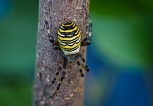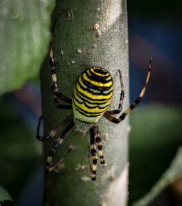 Jeg fik lejlighed til at opleve denne fine Hvepseedderkop i sommerhushaven i Gedesby.