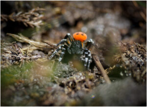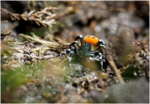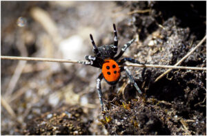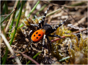 Den meget røde Mariehøneedderkop er en han, der er på jagt efter en mage. Han ses på enkelte jyske lokaliteter i det tidlige forår på tørre sydvendte skråninger uden for meget vegetation. Han er ikke ret stor og findes næsten kun ved at være opmærksom bevægelser på tørre flader mellem vegetationen, hvor han piler rundt.