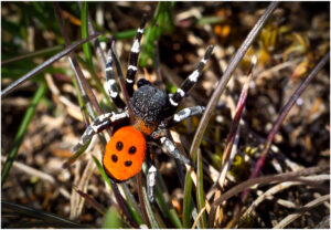 Mariehøneedderkoppen lever i et hul gravet ned i sandet, hvor de spinder et rør, der fungerer som fælde for Skarnsbasser, som efter at være faldet i fælden lammes med et bid fra edderkoppens kraftige tænder og derefter bliver fortæret.