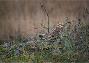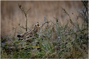 Mosehornuglerne på Ølsemagle Revle var nogenlunde samarbejdsvillige denne november i 2018. Bl.a. fik jeg held med at fotografere dem siddende. Ofte sidder de så skjult at man først opdager dem, når de farer op lige foran en.